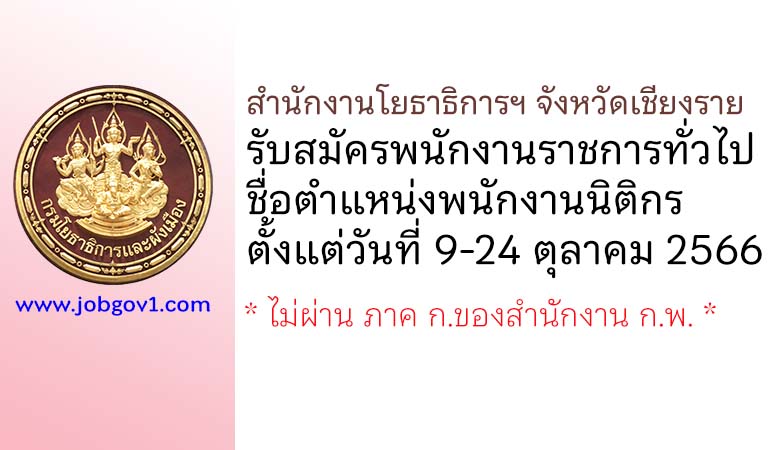 สำนักงานโยธาธิการและผังเมืองจังหวัดเชียงราย รับสมัครพนักงานราชการทั่วไป ตำแหน่งพนักงานนิติกร ตั้งแต่วันที่ 9-24 ตุลาคม 2566