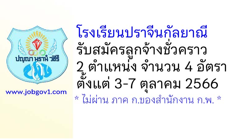 โรงเรียนปราจีนกัลยาณี รับสมัครลูกจ้างชั่วคราว 2 ตำแหน่ง 4 อัตรา ตั้งแต่วันที่ 3-7 ตุลาคม 2566
