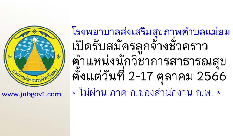 โรงพยาบาลส่งเสริมสุขภาพตำบลแม่ยม รับสมัครลูกจ้างชั่วคราว ตำแหน่งนักวิชาการสาธารณสุข ตั้งแต่วันที่ 2-17 ตุลาคม 2566