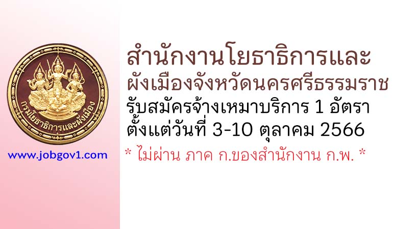 สำนักงานโยธาธิการและผังเมืองจังหวัดนครศรีธรรมราช รับสมัครจ้างเหมาบริการ 1 อัตรา ตั้งแต่วันที่ 3-10 ตุลาคม 2566