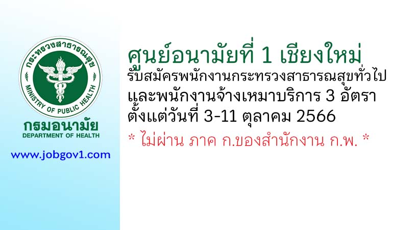 ศูนย์อนามัยที่ 1 เชียงใหม่ รับสมัครพนักงานกระทรวงสาธารณสุขทั่วไป และพนักงานจ้างเหมาบริการ 3 อัตรา ตั้งแต่วันที่ 3-11 ตุลาคม 2566
