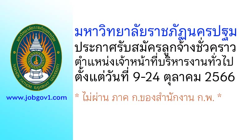 มหาวิทยาลัยราชภัฏนครปฐม รับสมัครลูกจ้างชั่วคราว ตำแหน่งเจ้าหน้าที่บริหารงานทั่วไป ตั้งแต่วันที่ 9-24 ตุลาคม 2566
