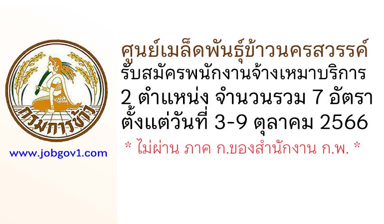 ศูนย์เมล็ดพันธุ์ข้าวนครสวรรค์ รับสมัครพนักงานจ้างเหมาบริการ 2 ตำแหน่ง 7 อัตรา ตั้งแต่วันที่ 3-9 ตุลาคม 2566