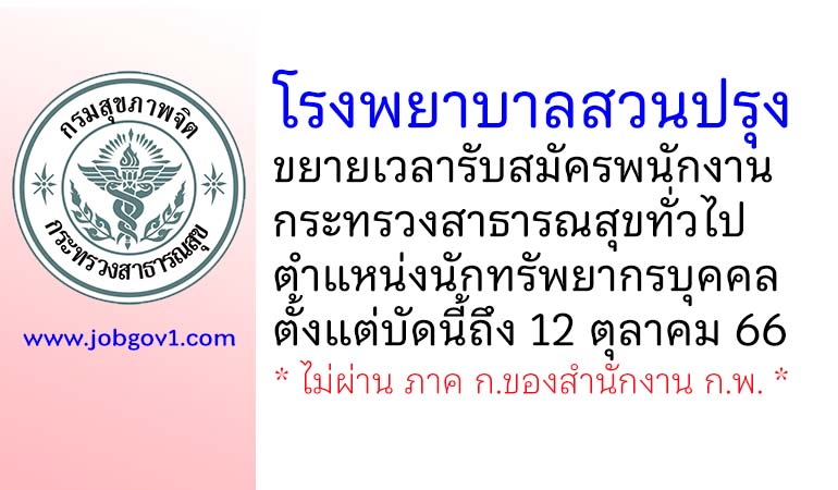 โรงพยาบาลสวนปรุง ขยายเวลารับสมัครพนักงานกระทรวงสาธารณสุขทั่วไป ตำแหน่งนักทรัพยากรบุคคล ตั้งแต่บัดนี้ถึง 12 ตุลาคม 2566