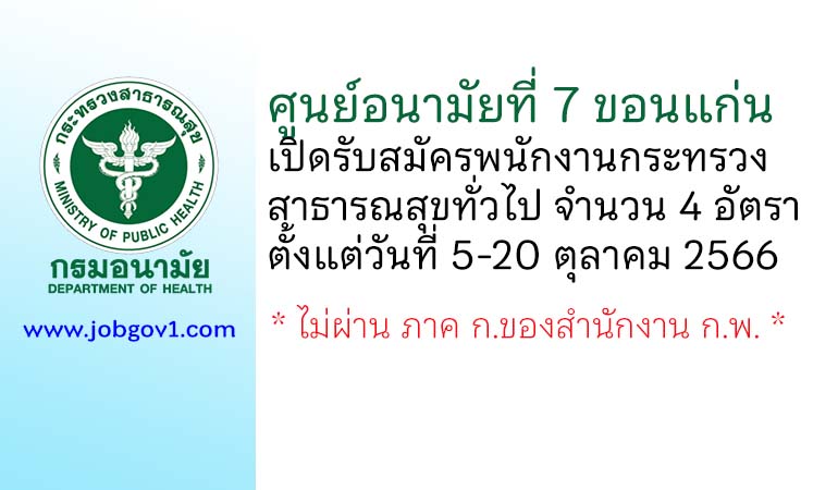 ศูนย์อนามัยที่ 7 ขอนแก่น รับสมัครพนักงานกระทรวงสาธารณสุขทั่วไป 4 อัตรา ตั้งแต่วันที่ 5-20 ตุลาคม 2566