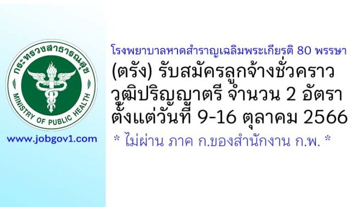 โรงพยาบาลหาดสำราญเฉลิมพระเกียรติ 80 พรรษา รับสมัครลูกจ้างชั่วคราว 2 อัตรา ตั้งแต่วันที่ 9-16 ตุลาคม 2566