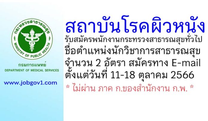 สถาบันโรคผิวหนัง รับสมัครพนักงานกระทรวงสาธารณสุขทั่วไป ตำแหน่งนักวิชาการสาธารณสุข 2 อัตรา ตั้งแต่วันที่ 11-18 ตุลาคม 2566