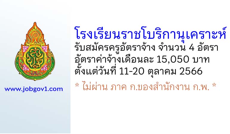 โรงเรียนราชโบริกานุเคราะห์ รับสมัครครูอัตราจ้าง จำนวน 4 อัตรา ตั้งแต่วันที่ 11-20 ตุลาคม 2566