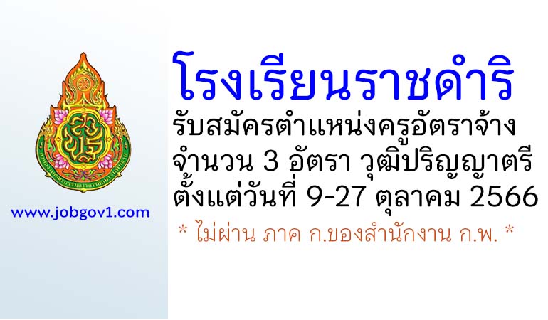 โรงเรียนราชดำริ รับสมัครครูอัตราจ้าง จำนวน 3 อัตรา ตั้งแต่วันที่ 9-27 ตุลาคม 2566
