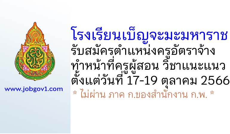 โรงเรียนเบ็ญจะมะมหาราช รับสมัครครูอัตราจ้าง ทำหน้าที่ครูผู้สอน วิชาแนะแนว ตั้งแต่วันที่ 17-19 ตุลาคม 2566