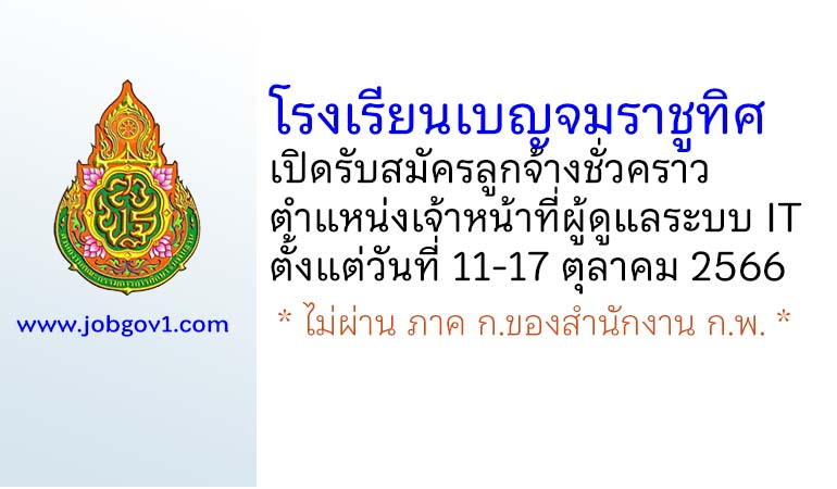 โรงเรียนเบญจมราชูทิศ รับสมัครลูกจ้างชั่วคราว ตำแหน่งเจ้าหน้าที่ผู้ดูแลระบบ IT ตั้งแต่วันที่ 11-17 ตุลาคม 2566