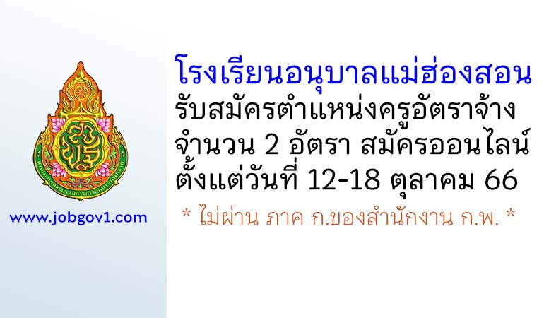 โรงเรียนอนุบาลแม่ฮ่องสอน รับสมัครครูอัตราจ้าง 2 อัตรา ตั้งแต่วันที่ 12-18 ตุลาคม 2566