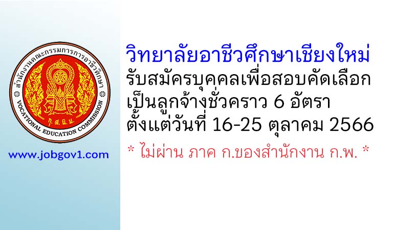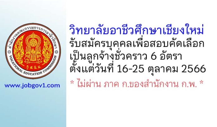 วิทยาลัยอาชีวศึกษาเชียงใหม่ รับสมัครลูกจ้างชั่วคราว 6 อัตรา ตั้งแต่วันที่ 16-25 ตุลาคม 2566
