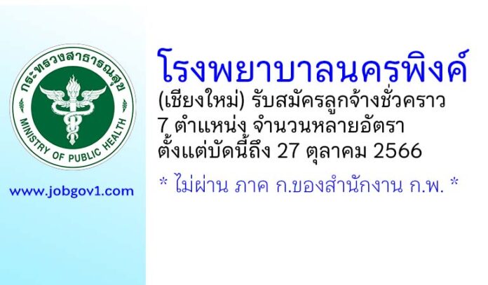 โรงพยาบาลนครพิงค์ รับสมัครลูกจ้างชั่วคราว 7 ตำแหน่ง หลายอัตรา ตั้งแต่บัดนี้ถึง 27 ตุลาคม 2566