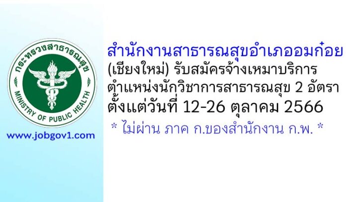 สำนักงานสาธารณสุขอำเภออมก๋อย รับสมัครจ้างเหมาบริการ ตำแหน่งนักวิชาการสาธารณสุข 2 อัตรา ตั้งแต่วันที่ 12-26 ตุลาคม 2566