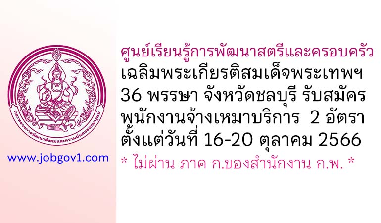 ศูนย์เรียนรู้การพัฒนาสตรีและครอบครัวเฉลิมพระเกียรติสมเด็จพระเทพฯ 36 พรรษา จังหวัดชลบุรี รับสมัครพนักงานจ้างเหมาบริการ 2 อัตรา ตั้งแต่วันที่ 16-20 ตุลาคม 2566