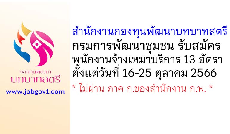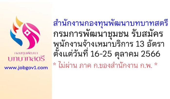 สำนักงานกองทุนพัฒนาบทบาทสตรี รับสมัครพนักงานจ้างเหมาบริการ 6 ตำแหน่ง 13 อัตรา ตั้งแต่วันที่ 16-25 ตุลาคม 2566