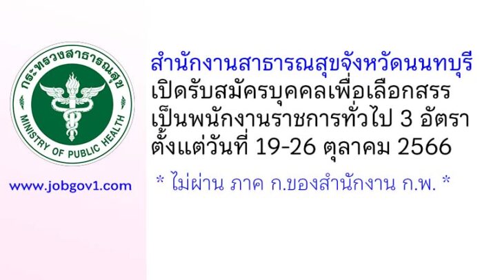 สำนักงานสาธารณสุขจังหวัดนนทบุรี รับสมัครบุคคลเพื่อเลือกสรรเป็นพนักงานราชการทั่วไป 3 อัตรา ตั้งแต่วันที่ 19-26 ตุลาคม 2566