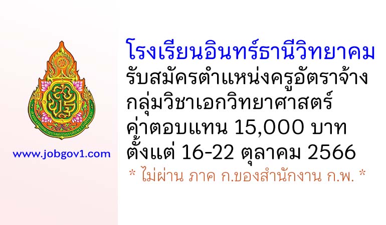 โรงเรียนอินทร์ธานีวิทยาคม รับสมัครครูอัตราจ้าง กลุ่มวิชาเอกวิทยาศาสตร์ ตั้งแต่วันที่ 16-22 ตุลาคม 2566