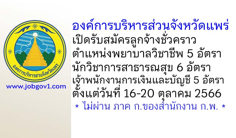 องค์การบริหารส่วนจังหวัดแพร่ รับสมัครบุคคลเพื่อการสรรหาและเลือกสรรจ้างเป็นลูกจ้างชั่วคราว 16 อัตรา ตั้งแต่วันที่ 16-20 ตุลาคม 2566