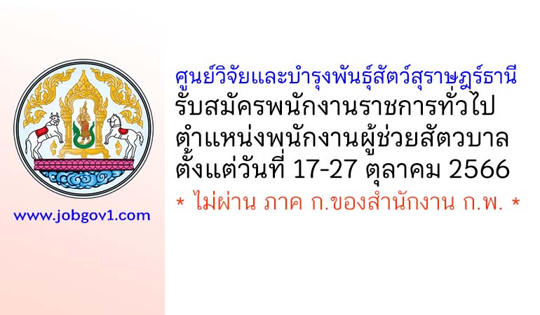 ศูนย์วิจัยและบำรุงพันธุ์สัตว์สุราษฎร์ธานี รับสมัครพนักงานราชการทั่วไป ตำแหน่งพนักงานผู้ช่วยสัตวบาล ตั้งแต่วันที่ 17-27 ตุลาคม 2566