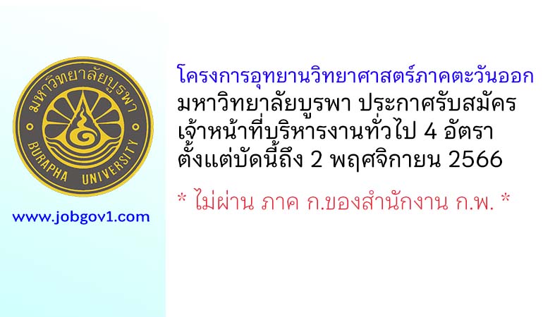 โครงการอุทยานวิทยาศาสตร์ภาคตะวันออก มหาวิทยาลัยบูรพา รับสมัครเจ้าหน้าที่บริหารงานทั่วไป 4 อัตรา ตั้งแต่บัดนี้ถึง 2 พฤศจิกายน 2566
