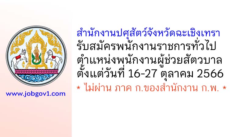 สำนักงานปศุสัตว์จังหวัดฉะเชิงเทรา รับสมัครพนักงานราชการทั่วไป ตำแหน่งพนักงานผู้ช่วยสัตวบาล ตั้งแต่วันที่ 16-27 ตุลาคม 2566
