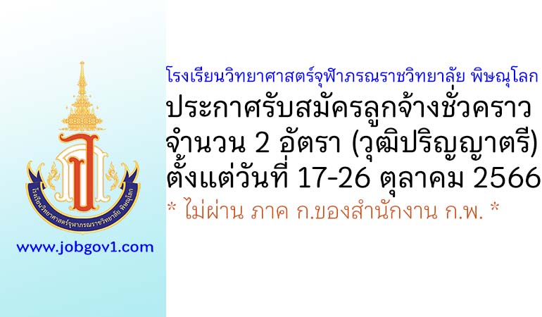 โรงเรียนวิทยาศาสตร์จุฬาภรณราชวิทยาลัย พิษณุโลก รับสมัครลูกจ้างชั่วคราว 2 อัตรา ตั้งแต่วันที่ 17-26 ตุลาคม 2566