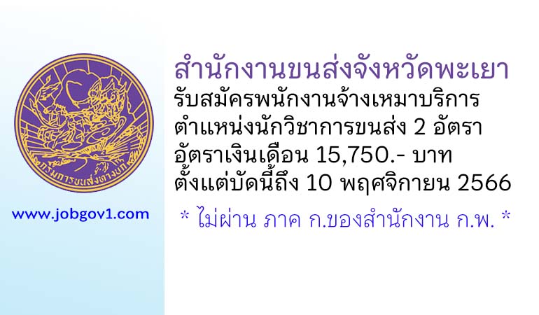 สำนักงานขนส่งจังหวัดพะเยา รับสมัครพนักงานจ้างเหมาบริการ ตำแหน่งนักวิชาการขนส่ง 2 อัตรา ตั้งแต่บัดนี้ถึง 10 พฤศจิกายน 2566