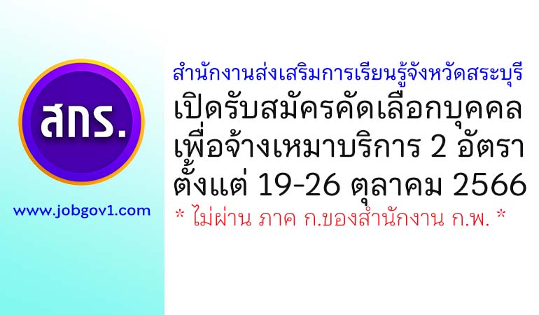 สำนักงานส่งเสริมการเรียนรู้จังหวัดสระบุรี รับสมัครคัดเลือกบุคคลเพื่อจ้างเหมาบริการ 2 อัตรา ตั้งแต่วันที่ 19-26 ตุลาคม 2566