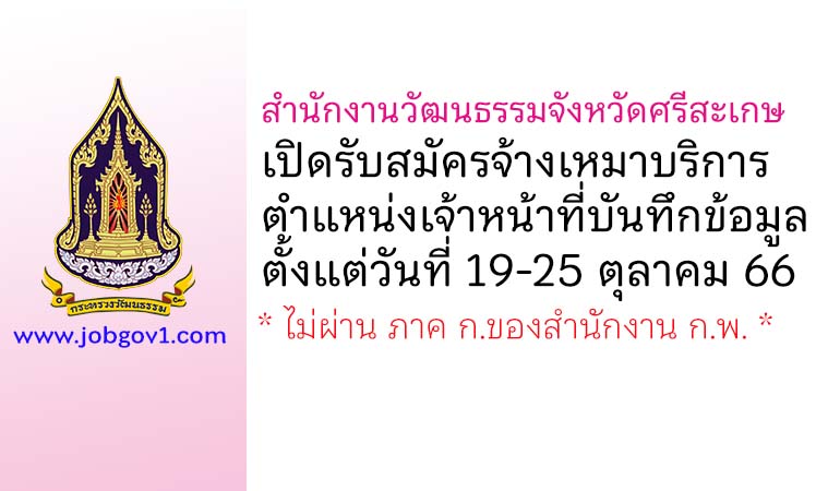 สำนักงานวัฒนธรรมจังหวัดศรีสะเกษ รับสมัครจ้างเหมาบริการ ตำแหน่งเจ้าหน้าที่บันทึกข้อมูล ตั้งแต่วันที่ 19-25 ตุลาคม 2566