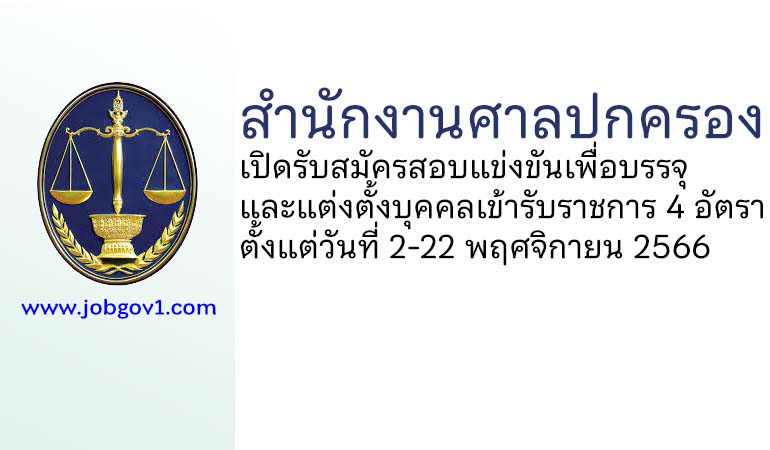 สำนักงานศาลปกครอง รับสมัครสอบแข่งขันเพื่อบรรจุและแต่งตั้งบุคคลเข้ารับราชการ 4 อัตรา ตั้งแต่วันที่ 2-22 พฤศจิกายน 2566