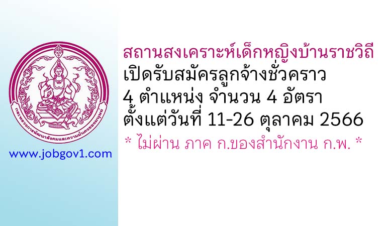 สถานสงเคราะห์เด็กหญิงบ้านราชวิถี รับสมัครลูกจ้างชั่วคราว 4 ตำแหน่ง 4 อัตรา ตั้งแต่วันที่ 11-26 ตุลาคม 2566