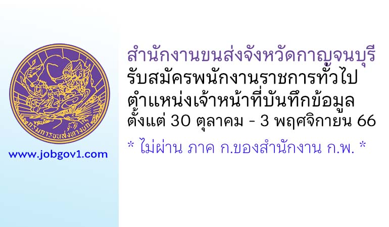 สำนักงานขนส่งจังหวัดกาญจนบุรี รับสมัครพนักงานราชการทั่วไป ตำแหน่งเจ้าหน้าที่บันทึกข้อมูล ตั้งแต่ 30 ตุลาคม – 3 พฤศจิกายน 2566