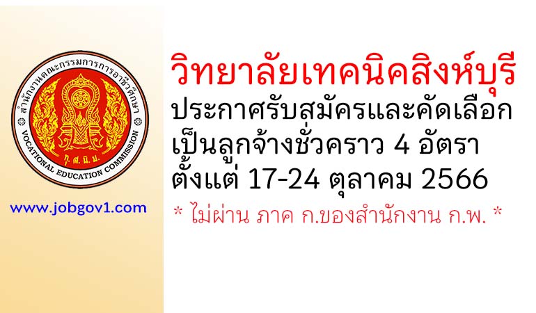 วิทยาลัยเทคนิคสิงห์บุรี รับสมัครและคัดเลือกเป็นลูกจ้างชั่วคราว 4 อัตรา ตั้งแต่วันที่ 17-24 ตุลาคม 2566