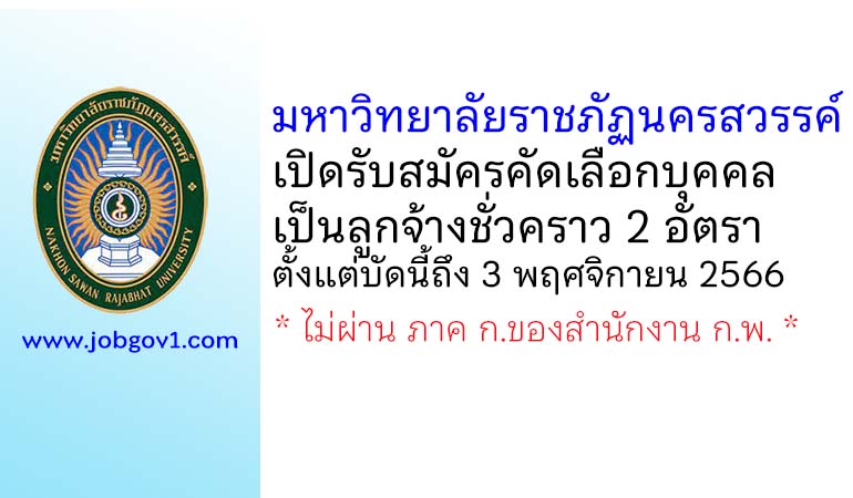 มหาวิทยาลัยราชภัฏนครสวรรค์ รับสมัครคัดเลือกบุคคลเป็นลูกจ้างชั่วคราว 2 อัตรา ตั้งแต่บัดนี้ถึง 3 พฤศจิกายน 2566