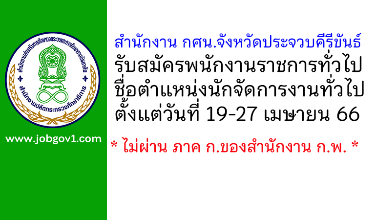 สำนักงาน กศน.จังหวัดประจวบคีรีขันธ์ รับสมัครพนักงานราชการทั่วไป ตำแหน่งนักจัดการงานทั่วไป ตั้งแต่วันที่ 19-27 เมษายน 2566