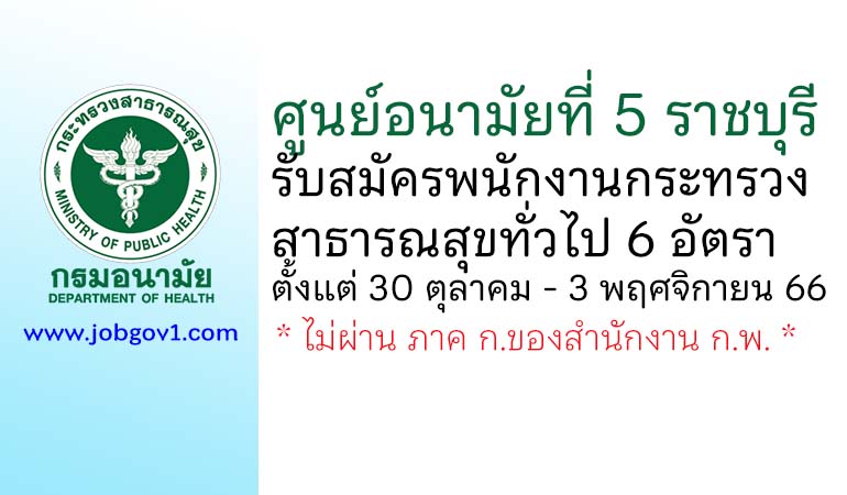 ศูนย์อนามัยที่ 5 ราชบุรี รับสมัครพนักงานกระทรวงสาธารณสุขทั่วไป 6 อัตรา ตั้งแต่ 30 ตุลาคม – 3 พฤศจิกายน 2566