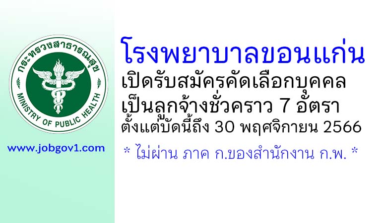 โรงพยาบาลขอนแก่น รับสมัครคัดเลือกบุคคลเป็นลูกจ้างชั่วคราว 7 อัตรา ตั้งแต่บัดนี้ถึง 30 พฤศจิกายน 2566