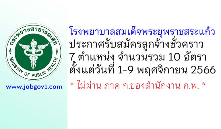 โรงพยาบาลสมเด็จพระยุพราชสระแก้ว รับสมัครลูกจ้างชั่วคราว 7 ตำแหน่ง 10 อัตรา ตั้งแต่วันที่ 1-9 พฤศจิกายน 2566