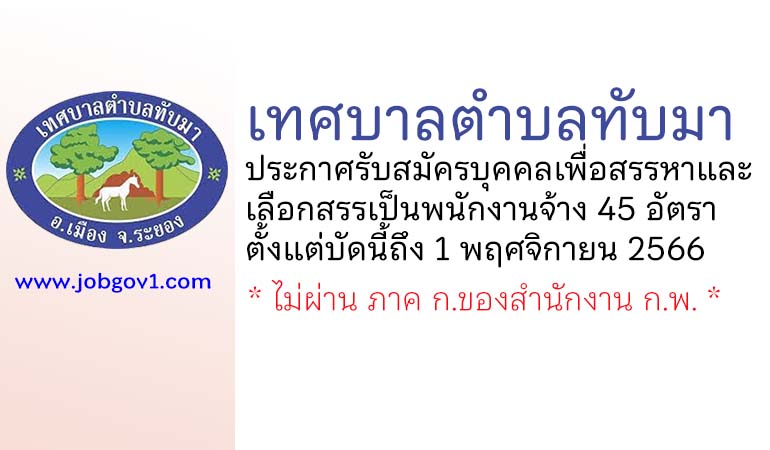 เทศบาลตำบลทับมา รับสมัครบุคคลเพื่อสรรหาและเลือกสรรเป็นพนักงานจ้าง 45 อัตรา ตั้งแต่บัดนี้ถึง 1 พฤศจิกายน 2566