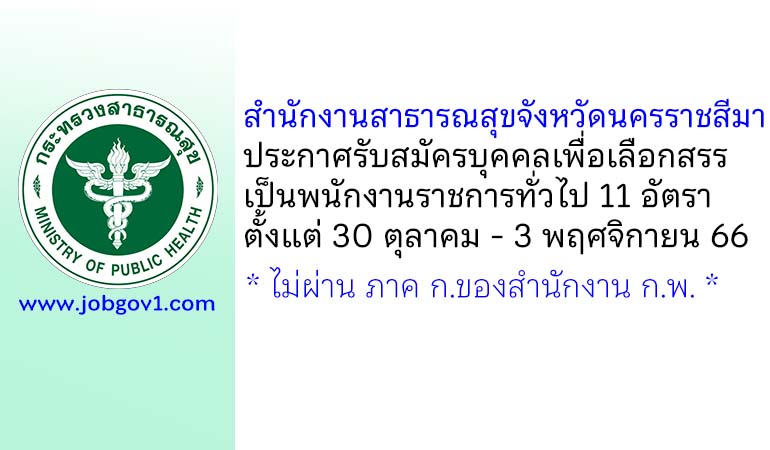 สำนักงานสาธารณสุขจังหวัดนครราชสีมา รับสมัครบุคคลเพื่อเลือกสรรเป็นพนักงานราชการทั่วไป 11 อัตรา ตั้งแต่ 30 ตุลาคม – 3 พฤศจิกายน 2566