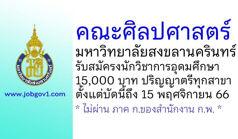 คณะศิลปศาสตร์ มหาวิทยาลัยสงขลานครินทร์ รับสมัครพนักงานเงินรายได้ ตำแหน่งนักวิชาการอุดมศึกษา ตั้งแต่บัดนี้ถึง 15 พฤศจิกายน 2566