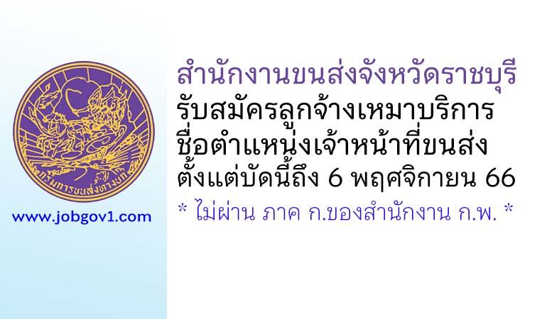 สำนักงานขนส่งจังหวัดราชบุรี รับสมัครลูกจ้างเหมาบริการ ตำแหน่งเจ้าหน้าที่ขนส่ง ตั้งแต่บัดนี้ถึง 6 พฤศจิกายน 2566
