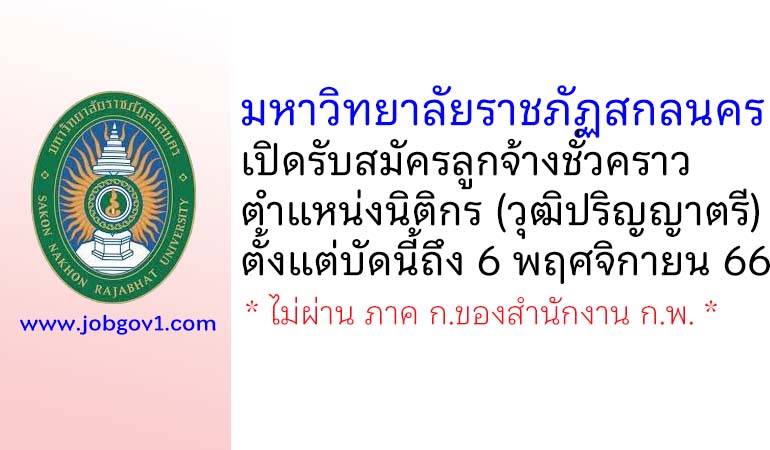มหาวิทยาลัยราชภัฏสกลนคร รับสมัครลูกจ้างชั่วคราว ตำแหน่งนิติกร ตั้งแต่บัดนี้ถึง 6 พฤศจิกายน 2566