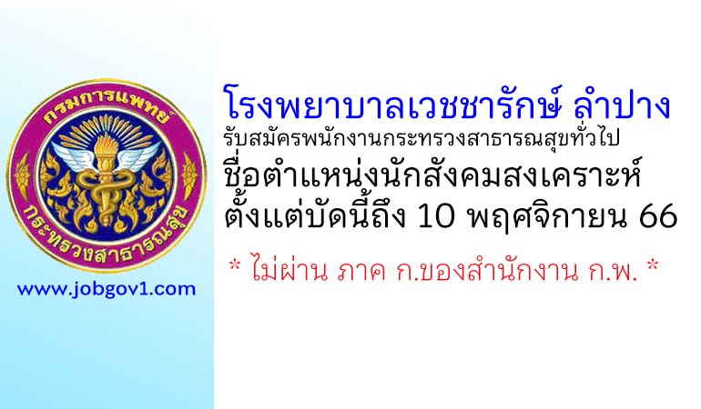 โรงพยาบาลเวชชารักษ์ ลำปาง รับสมัครพนักงานกระทรวงสาธารณสุขทั่วไป ตำแหน่งนักสังคมสงเคราะห์ ตั้งแต่บัดนี้ถึง 10 พฤศจิกายน 2566