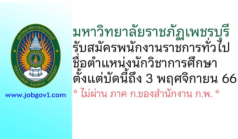 มหาวิทยาลัยราชภัฏเพชรบุรี รับสมัครพนักงานราชการทั่วไป ตำแหน่งนักวิชาการศึกษา ตั้งแต่บัดนี้ถึง 3 พฤศจิกายน 2566