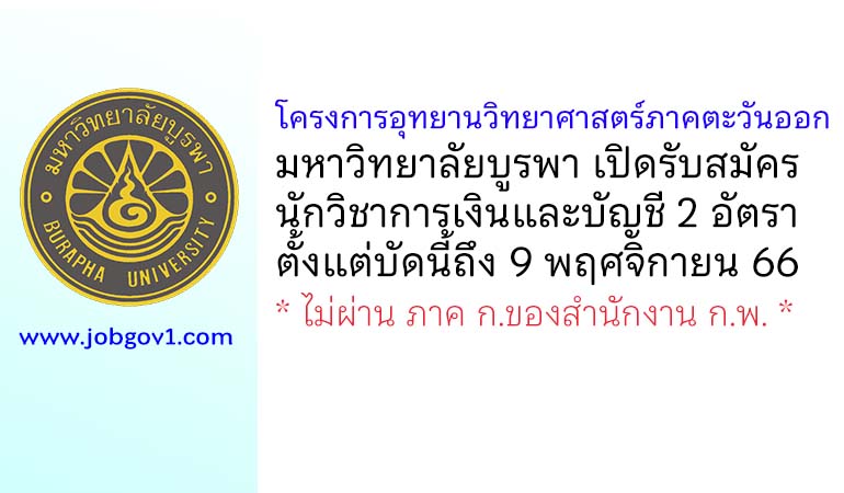 โครงการอุทยานวิทยาศาสตร์ภาคตะวันออก มหาวิทยาลัยบูรพา รับสมัครนักวิชาการเงินและบัญชี 2 อัตรา ตั้งแต่บัดนี้ถึง 9 พฤศจิกายน 2566