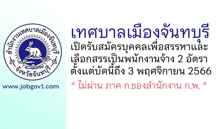 เทศบาลเมืองจันทบุรี รับสมัครบุคคลเพื่อสรรหาและเลือกสรรเป็นพนักงานจ้าง 2 อัตรา ตั้งแต่บัดนี้ถึง 3 พฤศจิกายน 2566