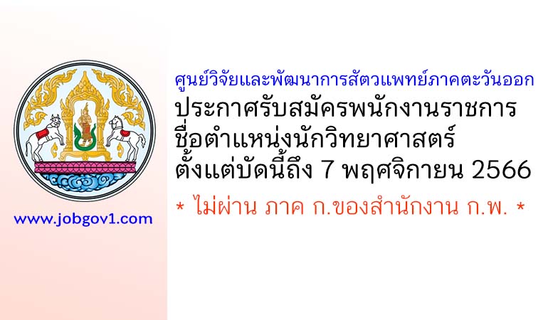 ศูนย์วิจัยและพัฒนาการสัตวแพทย์ภาคตะวันออก รับสมัครพนักงานราชการ ตำแหน่งนักวิทยาศาสตร์ ตั้งแต่บัดนี้ถึง 7 พฤศจิกายน 2566